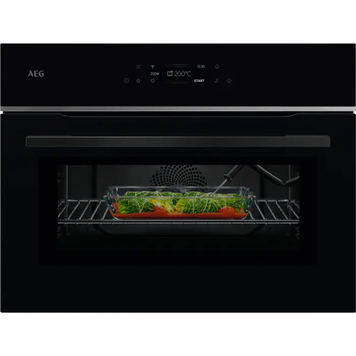 Den AEG 8000 MealAssist Mikro + varmluft Kompaktovn kombinerer mikrobølge- og varmluftsteknologi for hurtigere og præcise madlavningsresultater. Med en kompakt størrelse på 45 cm i højden passer den perfekt til køkkener med pladsbegrænsning, uden at gå på kompromis med funktionaliteten. Ovnen har en intuitiv touchbetjening med WiFi-forbindelse, der sikrer nem og fleksibel styring af madlavningen. Med den avancerede CombiQuick® teknologi kan du tilberede måltider op til 50% hurtigere uden at miste kvalitet, hvilket gør den ideel til travle hjem eller mindre husholdninger.
