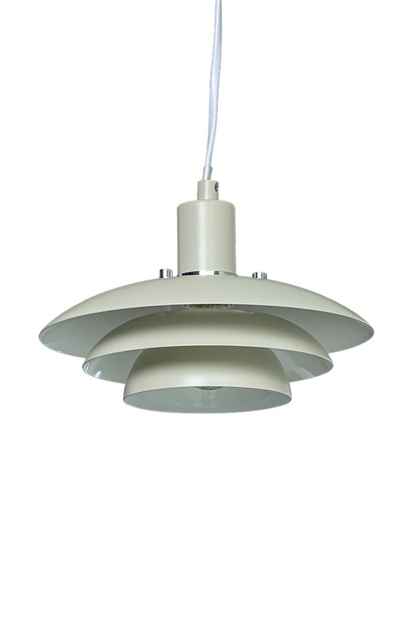 Metallet i lampens skærm sikrer robusthed og en tidløs finish, mens den glatte, hvide overflade bidrager til et stilrent look med let vedligeholdelse. Pendlen bruger en standard E14 fatning, der kan rumme op til 30W, hvilket gør det nemt at skifte pærer efter ønske.