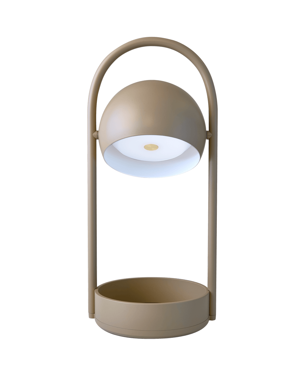 Ball Portable byder også på en skålformet fod med plads til småting og et tiltalende, tidløst design signeret Benny Frandsen, der sikrer, at lampen passer ind i både moderne og klassiske hjem.