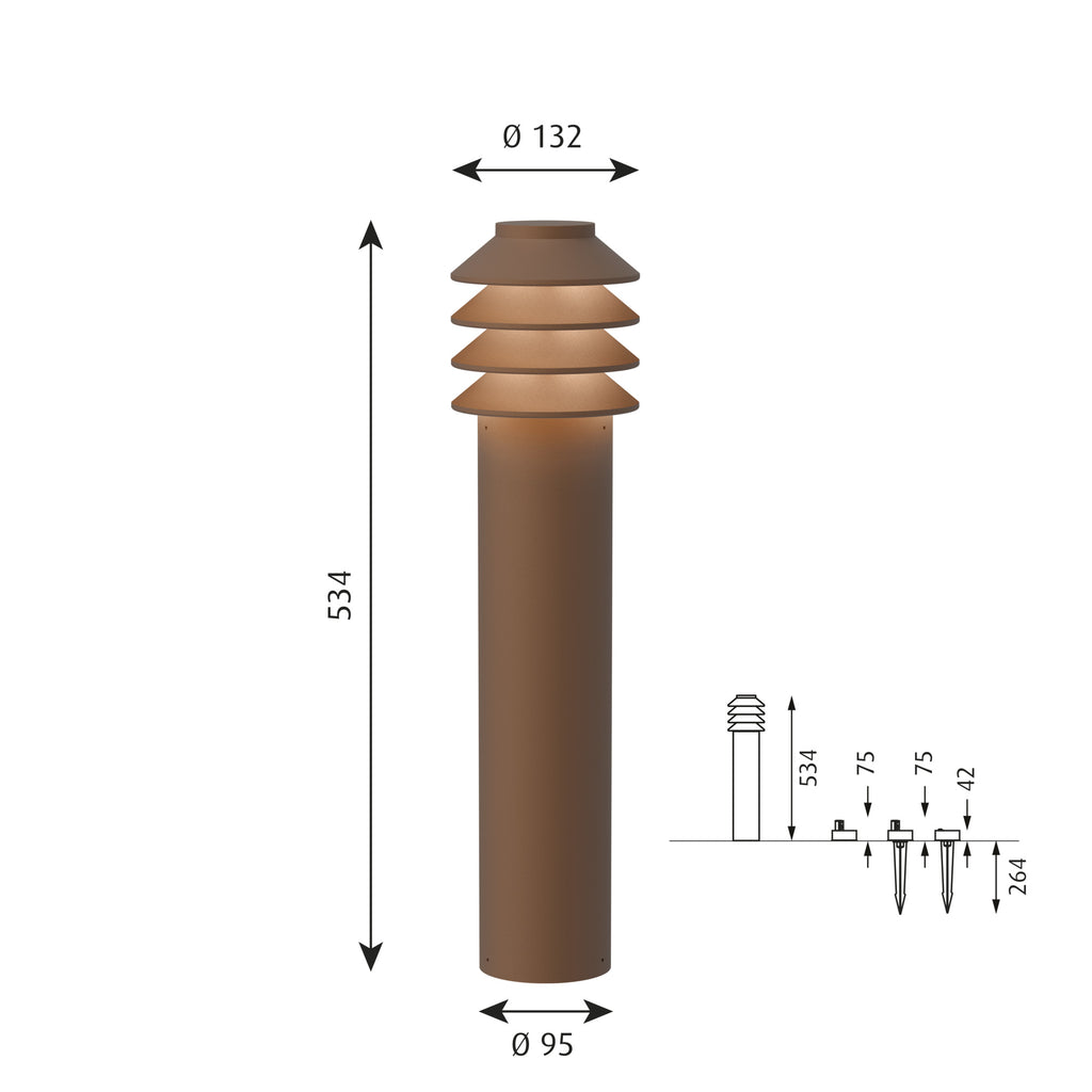 Bysted Garden Pullert Lang Anker u Adapter LED 14W 3000K Corten