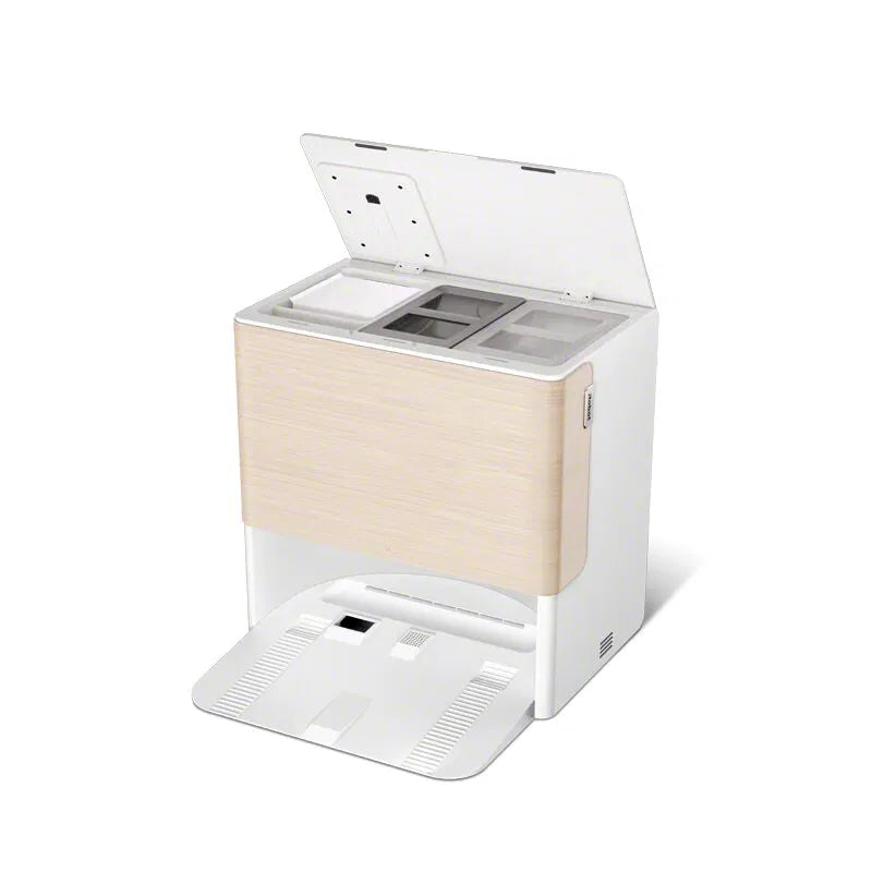 Robotstøvsugeren er lavet med avanceret teknologi, der kombinerer robust gummibørster, en motoriseret rullemoppe med opvarmet vand, og en selvvaskende moppeenhed, der sikrer konstant optimal rengøring. AutoWash™-docken sørger for genopfyldning af vand og vask af moppen efter hver brug, hvilket opretholder hygiejne og rengøringseffektivitet. Den kompakte dock er designet til nem placering i hjemmet uden at fylde for meget.