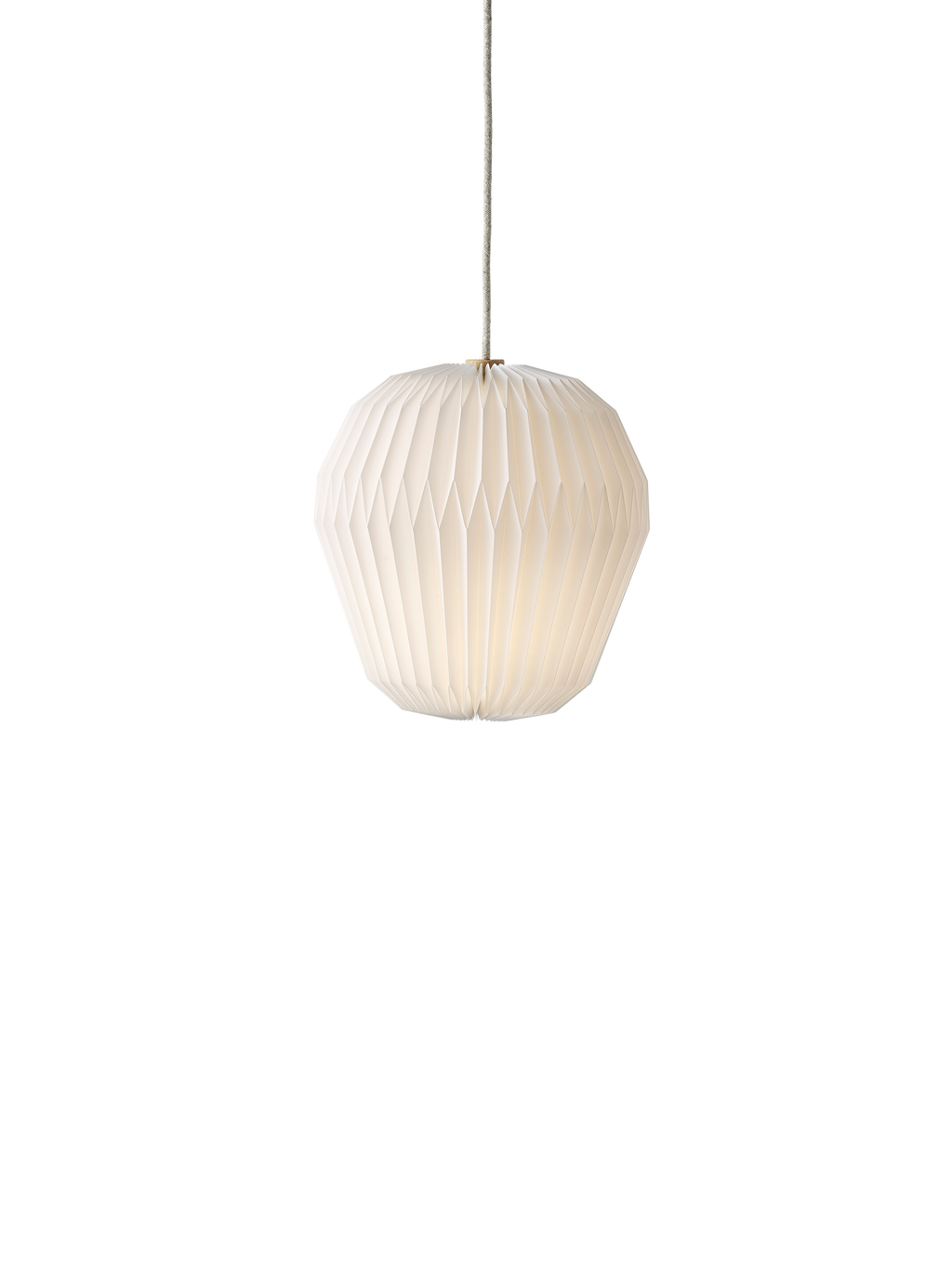 Håndfoldet plisseret skærm, som giver et behageligt, diffust lys uden at blænde.