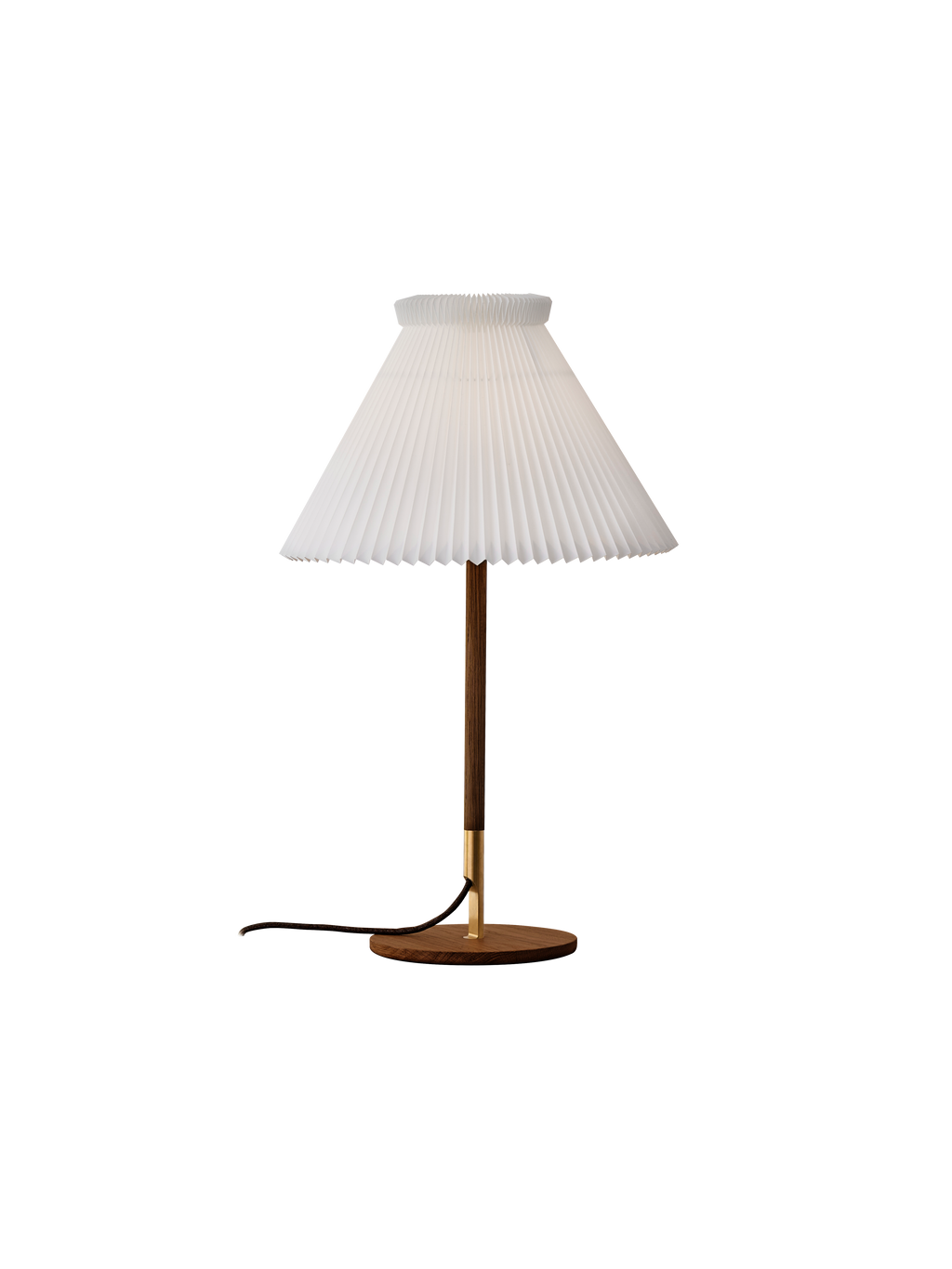 Le Klint 328 LK 80 er fremstillet i eg med en præcist udført fod og stander, der samles via en lille messingdetalje, som fungerer som både konstruktiv og visuel markering. Lampen leveres med en klassisk, håndfoldet Le Klint Model 1 skærm i plast, og bruger en enkelt E27 lyskilde på maksimalt 20 W LED, hvilket giver et behageligt lysniveau til dagligt brug. Bordlampen måler 70 cm i højden med en skærmdiameter på 22 cm, hvilket gør den velproportioneret til både arbejds- og stemningsbelysning på mindre flader.