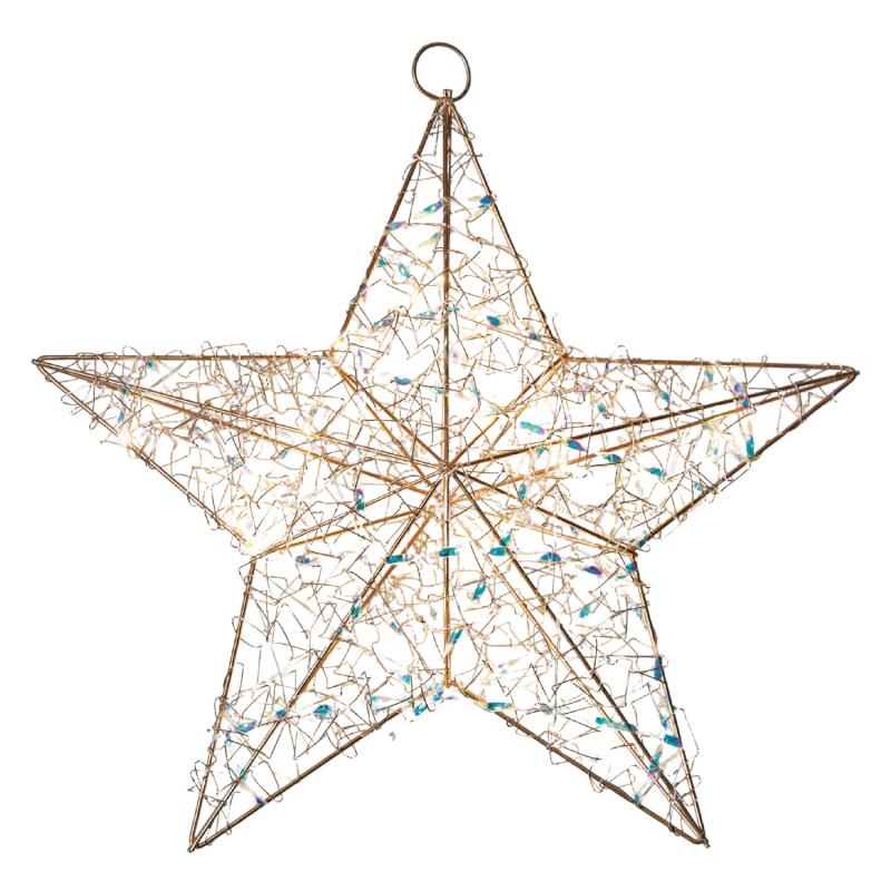 Lily Stjerne med 20 LED-lys er en elegant og dekorativ lyskilde, der tilfører ethvert rum et blødt og varmt skær. Stjernen er designet med en fin gylden tråd konstruktion, hvor de 20 LED-pærer er jævnt fordelt for at skabe en indbydende og stemningsfuld atmosfære. Den kompakte størrelse og batteridrift gør den fleksibel at placere i fx vinduer, vaser eller som en del af juledekorationer. Lily Stjernen er ideel til indendørs brug året rundt, især som hyggelys i efterårs- og vintermånederne.