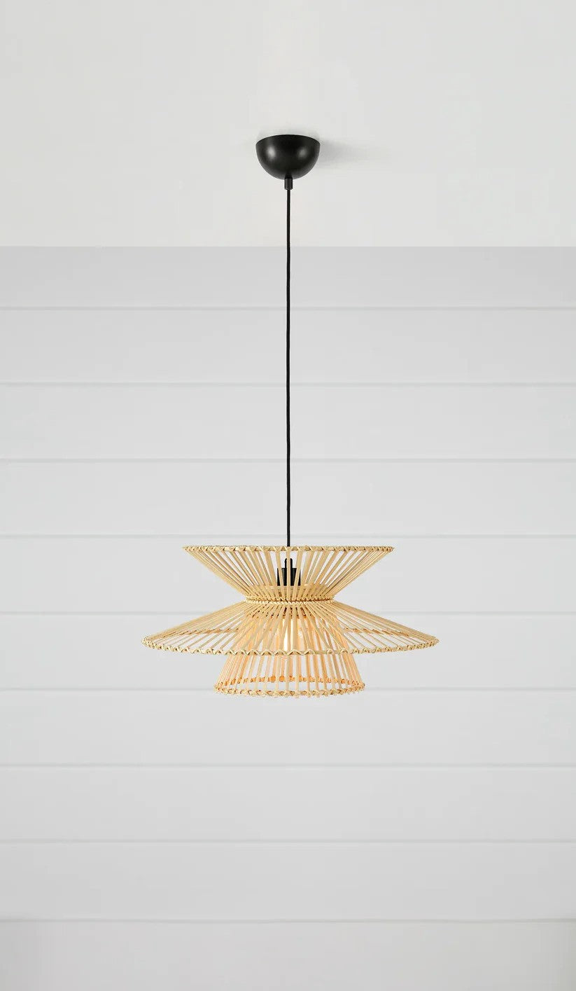 Duplici Loftslampen i natur er en teknisk elegant og bæredygtig lampe, der kombinerer et naturligt udtryk med funktionel belysning. Den er fremstillet af bambus, et slidstærkt og miljøvenligt materiale, som sikrer både lang levetid og et varmt, naturligt lys.