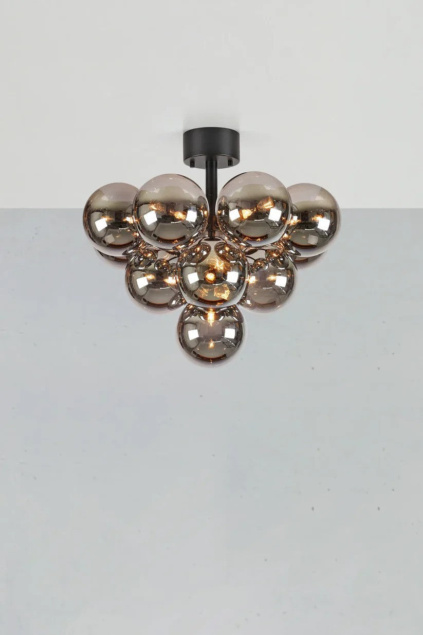 Merlot Loftslampe 13L Mat Sort/Røg er en teknisk veludført loftlampe med 13 lyskilder med G9-fatning, der hver kan anvende pærer op til 18W, hvilket sikrer effektiv og kraftfuld belysning.