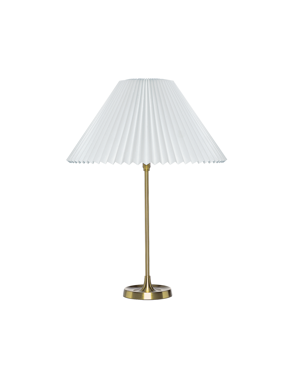 Le Klint Model 307 er kendt for sit bløde, diffuse lys, der skabes af den karakteristiske hvide plisserede lampeskærm. Skærmens design sikrer, at lyset fordeles jævnt og behageligt i rummet, hvilket minimerer skarpe skygger og blænding. Kombinationen af den klassiske messingfod og det lette, luftige skærmmateriale giver lampen et tidløst udtryk, som både fremhæver lysets kvalitet og skaber en varm stemning, uanset hvor lampen placeres.