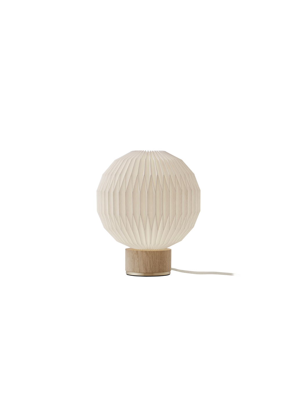 Elegant bordlampeserie med tidløst dansk design, håndfoldet skærm og eksklusiv træfod