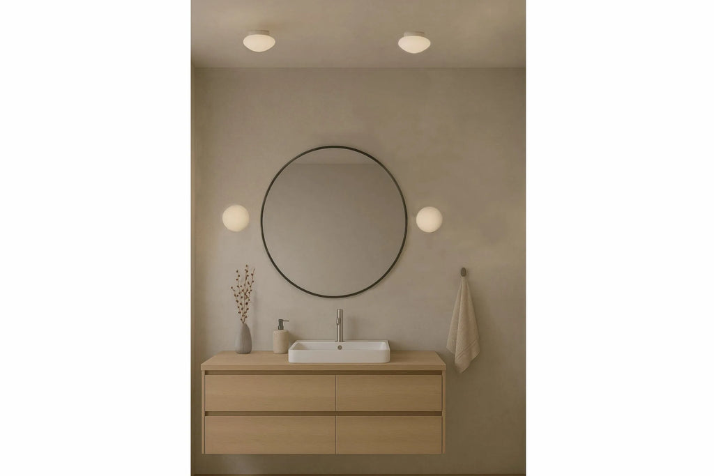 Mushroom er en stilren og alsidig lampe, der kan bruges både som væg- og loftlampe. Med sit runde formsprog og det matte opalglas giver Mushroom et behageligt og blændfrit lys – perfekt til badeværelset, entreen eller som stemningsskaber i andre rum. Det enkle design gør Mushroom nem at kombinere med forskellige stilarter og materialer. Den hvide base og opalglasset sikrer et harmonisk udtryk, mens det integrerede LED-lys på 2700K giver en varm og imødekommende belysning. Lampen er desuden dæmpbar, så du nemt kan justere lyset efter behov og stemning. Med IP44-klassificering er Mushroom velegnet til brug i badeværelser og andre områder, hvor der stilles krav til modstandsdygtighed over for fugt.