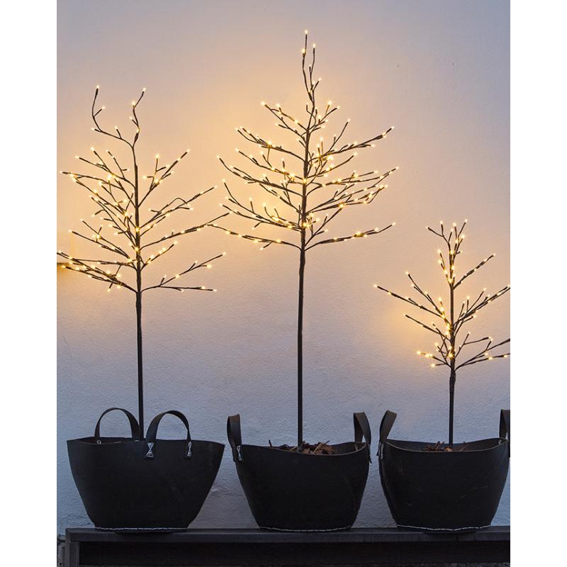 Noah Træ 1,1 meter 80 LED er et smukt og funktionelt lysende træ, der skaber en varm og hyggelig atmosfære både inde og ude. Med sine 80 varme hvide LED-lys, der er diskret integreret i grenene, giver det et blødt og elegant lys til jule- og vinterdekorationer. Træet er designet til at kunne placeres i krukker, kurve eller direkte i jorden med det medfølgende metalspyd, hvilket gør det meget anvendeligt til forskellige opholdssteder. Det er IP44-certificeret, hvilket sikrer, at det kan bruges sikkert udendørs under overdækning.