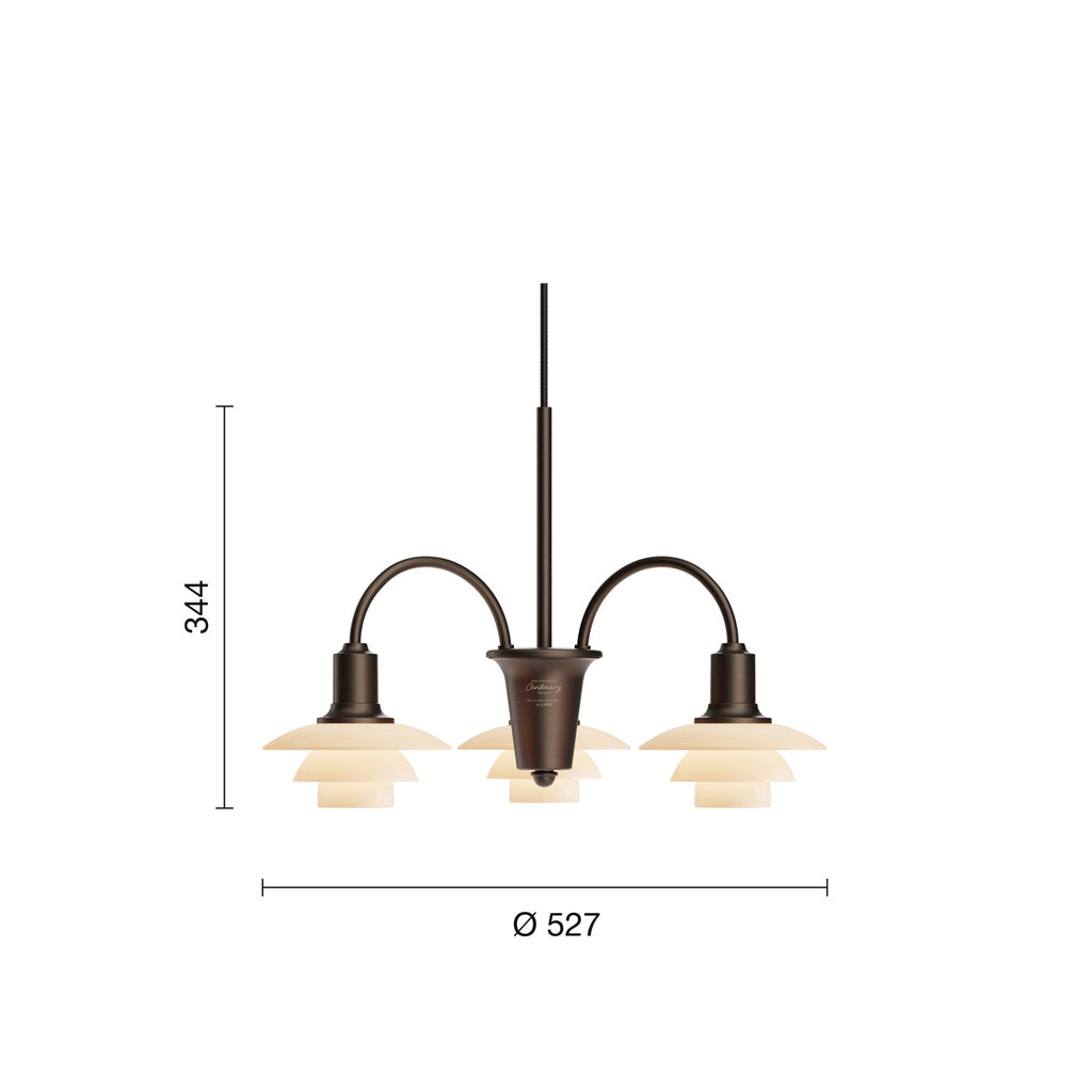 PH 1/1 Centenary Edition Aged Brass/Dusty Terracotta 3-armet lysekrone
