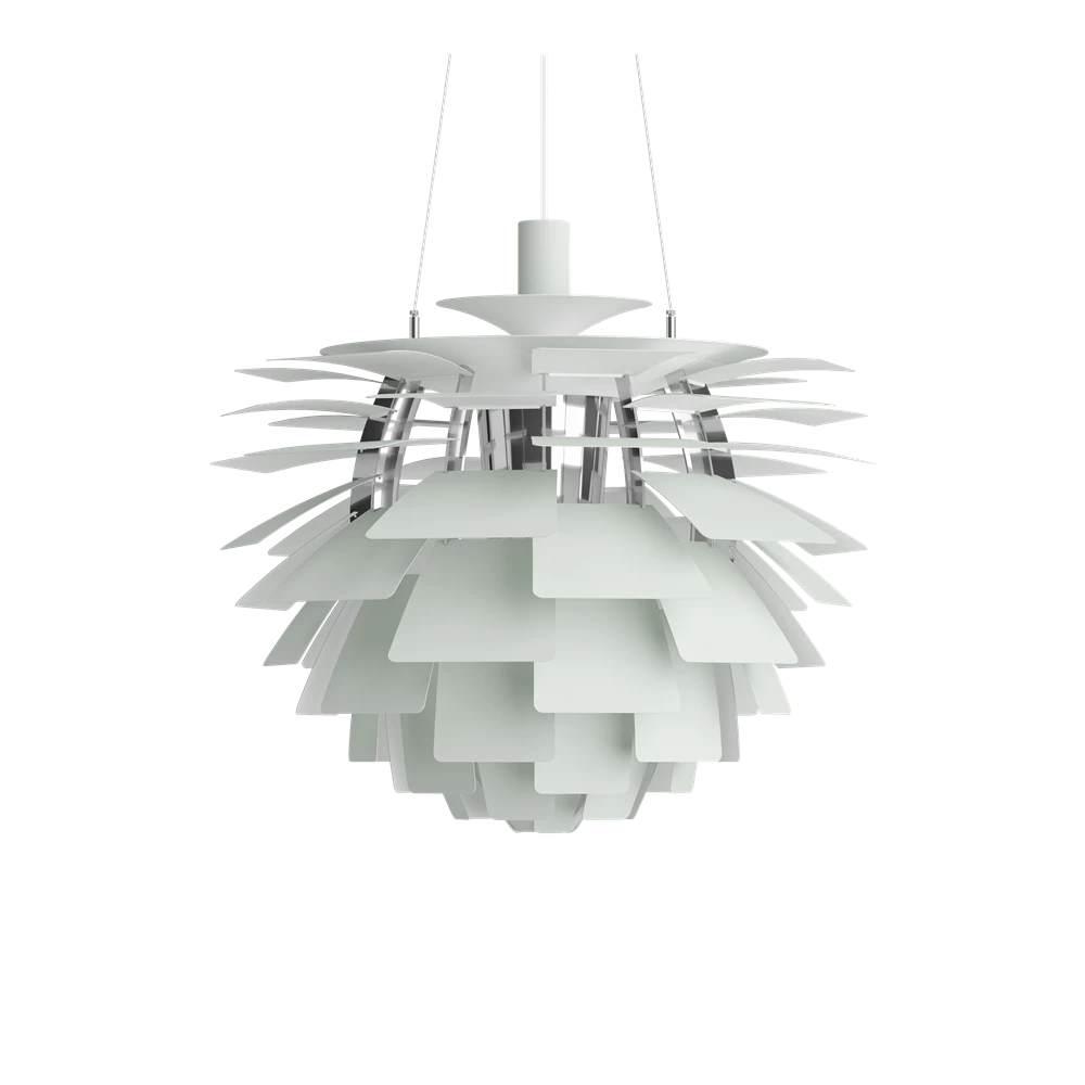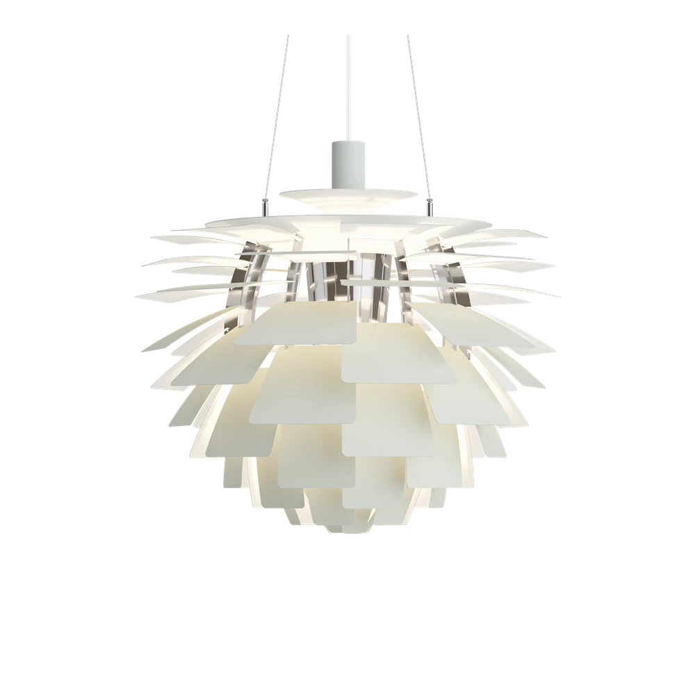 PH Artichoke Ø 600 er en enestående pendellampe, der er kendt for sit ikoniske design og sin sublime lysspredning. Lampens 72 overlappende "blade" er nøje placeret i 12 rækker, hvilket gør, at lyset ikke blænder fra nogen vinkel – uanset hvor i rummet du befinder dig. Resultatet er et blødt, behageligt og helt refleksfrit lys, hvor pærens lyskilde skjules fuldstændigt, og lyset fordeles jævnt ud i hele rummet. Der opstår en elegant leg med skygger og refleksioner, som både fremhæver rummets detaljer og skaber en indbydende atmosfære.