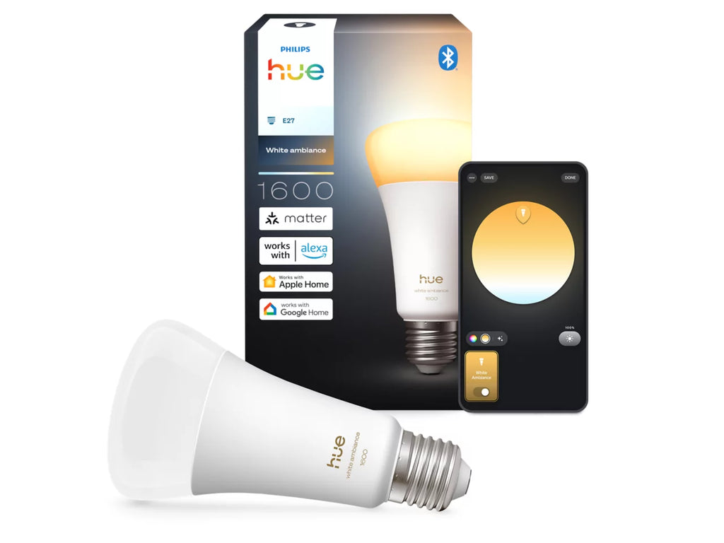 Få et behageligt, blødt, hvidt lys i dit hjem med en intelligent dæmpbar pære. Styr den med det samme via Bluetooth i ét rum, eller tilslut den til en Hue Bridge for at få adgang til alle funktionerne.