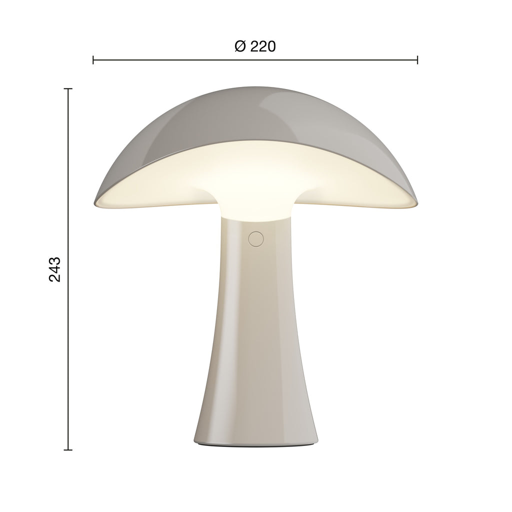 Rumee 220 er fremstillet i kvalitets polymer-materiale, der sikrer både holdbarhed og lav vægt. Et integreret LED-modul leverer energieffektivt, varmt lys, og en indbygget diffusor gør lyset blødt og behageligt uden blænding. Den trådløse funktion og det intuitive dæmpesystem gør lampen til et alsidigt valg, uanset om den bruges indendørs eller på altanen.