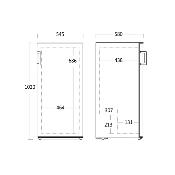 Fritstående køleskab med produktmål 102,5 x 54,5 x 58,0 cm (HxBxD), så det passer perfekt som lille køleskab i mindre køkkener, sommerhuse eller som ekstra skab.