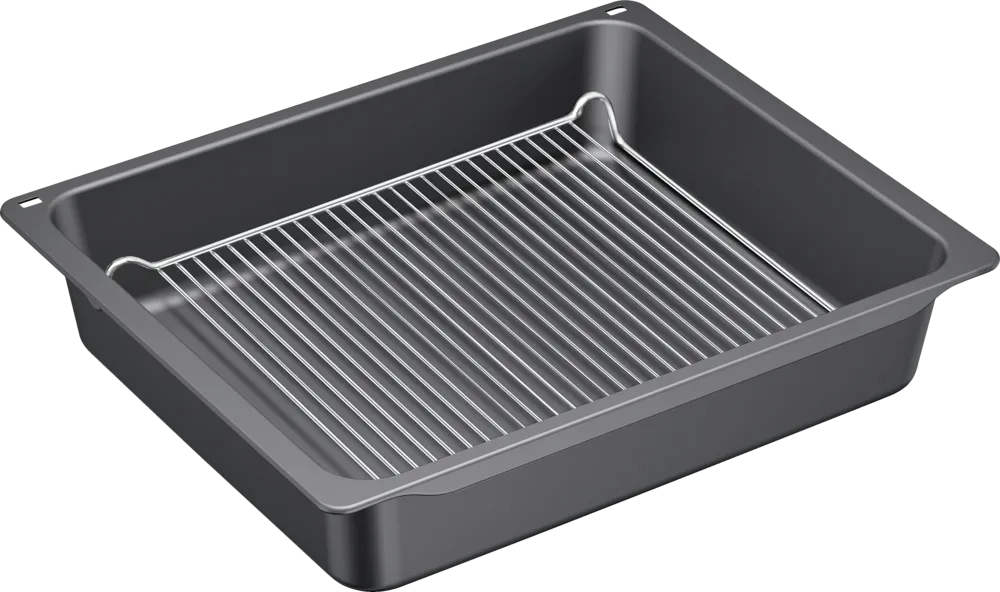 Siemens HZ633070 er en ekstra dyb, professionel ovnpande med metalrist, der er ideel til store gryderetter, moussaka, stege, grillretter og gratinerede retter med en kapacitet på op til 10 liter. Denne pande kombinerer robust materiale med funktionelt design, som sikrer jævn varmefordeling og nem tilberedning af større portioner. Den er perfekt til den seriøse hjemmekok eller professionelle, der ønsker effektiv og alsidig madlavning i ovnen.