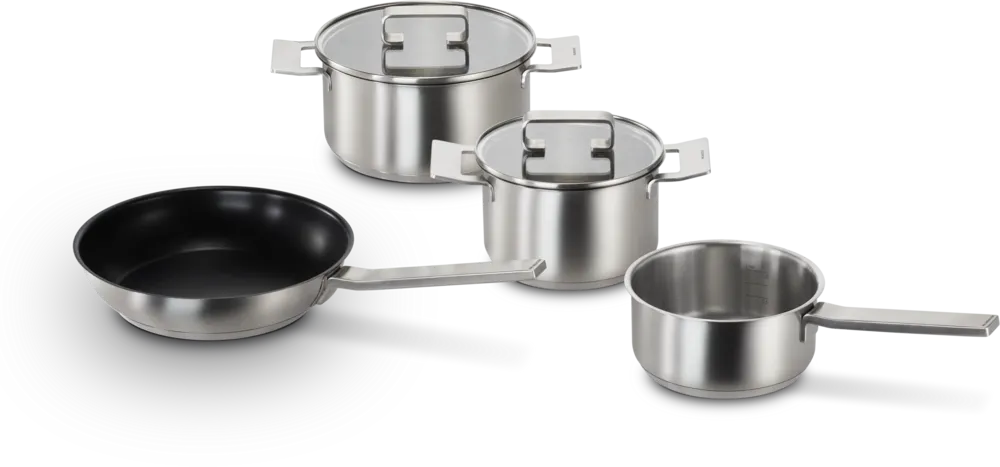HZ9SE040 grydesæt fra Siemens kombinerer holdbarhed, funktionalitet og effektivitet for en optimal madlavningsoplevelse. Sættet er specielt designet til induktionskogeplader og sikrer jævn varmefordeling takket være kapselbasen med aluminiumskerne. Den holdbare 3-lags non-stick belægning gør rengøringen nem og madlavningen mere skånsom, samtidig med at gryderne er ovnfaste op til 220°C uden låg.