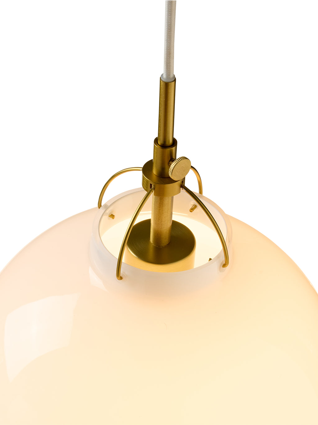 Toscana pendellampen kombinerer tidløs elegance med moderne design, hvilket gør den til et ideelt valg til både hjem og erhverv. Med sin runde form og opalglas diffuser spreder den et blødt, behageligt lys, der skaber en varm atmosfære. Den elegante ribbonede lampskærm tilføjer et sofistikeret visuelt element, mens den er nem at integrere i forskellige indretninger. Perfekt til køkken, spisestue eller stue, hvor design og funktion går hånd i hånd.